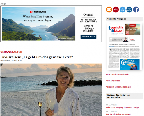 Mein Urlaubsglück wächst weiter. Im April stoßen Natascha Neumann und Jasmin Bleile zur Kooperation für mobile Reiseberater unter dem Dach der Rita AG. Sie hatten zuvor 18 Jahre lang das Ossweiler Reisecenter in Ludwigsburg betrieben und entschieden sich nun zu einem Wechsel vom stationären zum mobilen Vertrieb...