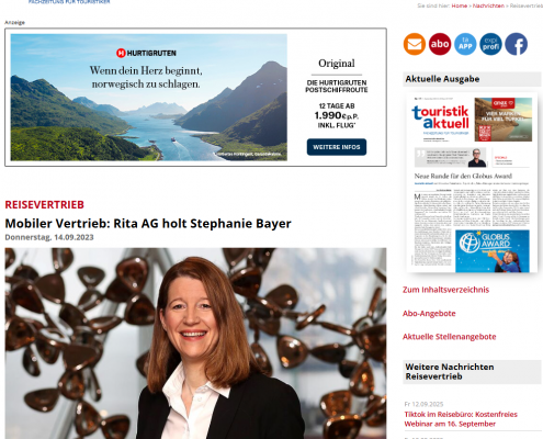 Mobiler Vertrieb: Rita AG startet eigenen Reiseveranstalter